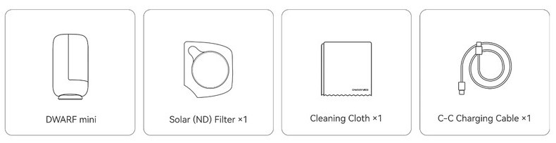 Obsah balení: teleskop, sluneční filtr, antistatická utěrka, C-C nabíjecí kabel.