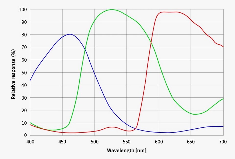 - Velmi citlivý snímač CMOS: kvantová účinnost v maximu přes 75 % (cca 530 nm)