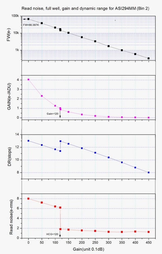 Full well kapacita 66387e modelu ASI294MM je téměř nejvyšší ze všech planetárních kamer ASI. Zajišťuje velmi vysoký dynamický rozsah, což výrazně snižuje problém přeexponovaných snímků a také pomáhá shromažďovat bohatší barevné informace.