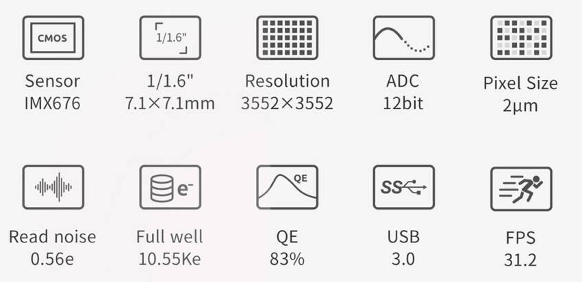 Díky technologii zadního podsvícení snímače (BSI nebo backside illumination, back-illuminated) a pokročilé technologii obrazových bodů vykazuje kamera velmi nízkou úroveň čtecího šumu (read noise) a ultra citlivost. Kamera pracuje velmi dobře obzvláště ve slabých světelných podmínkách a je schopna zachytit velmi čisté snímky různých nebeských útvarů.