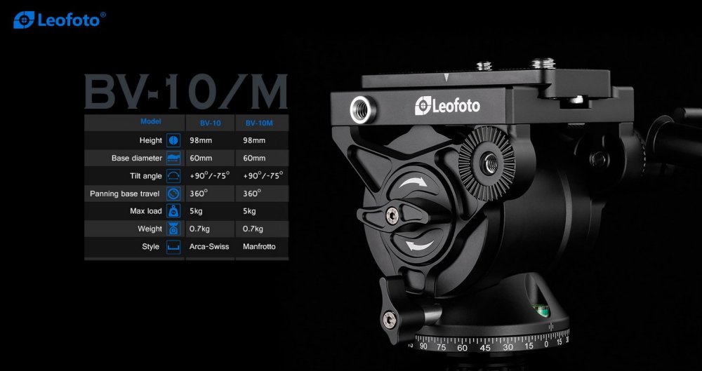 Leofoto - fluidní video hlava BV-10 Arca-Swiss (5kg)