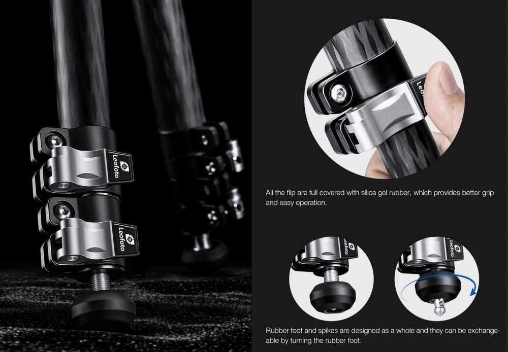 Rychloupínací spojky pro nastavení délky nohou stativu.