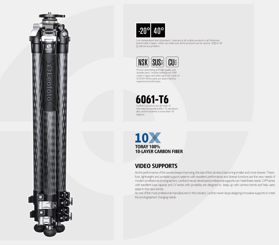 100% karbonový stativ složený z deseti vrstev karbonových vláken.