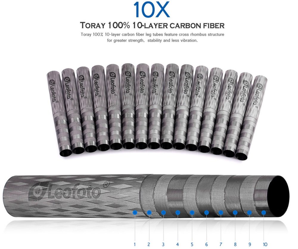100% karbonový stativ složený z deseti vrstev karbonových vláken.