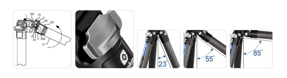 Rychloupínací otočný systém aretace nohou stativu. Stačí otočka o 1/4.