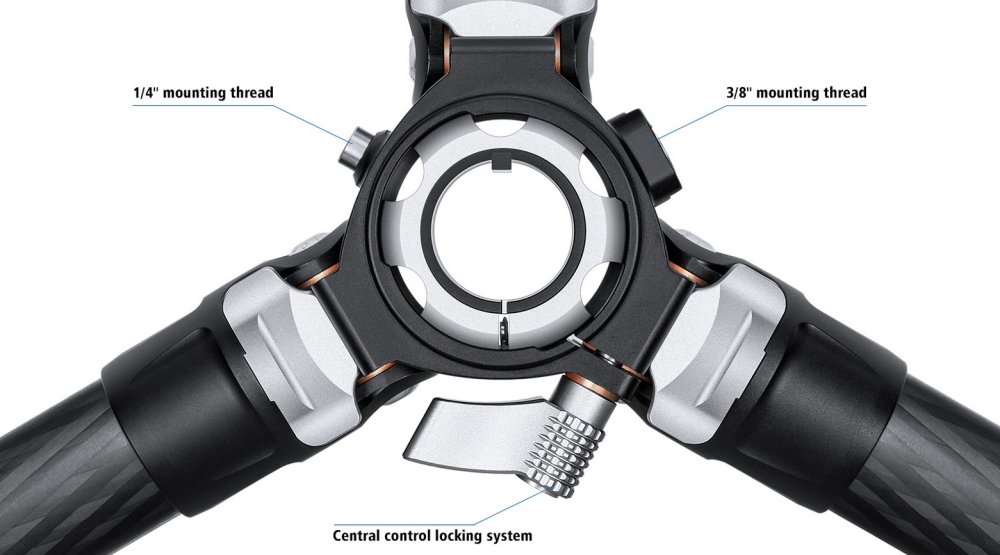 100% karbonový stativ složený z deseti vrstev karbonových vláken.