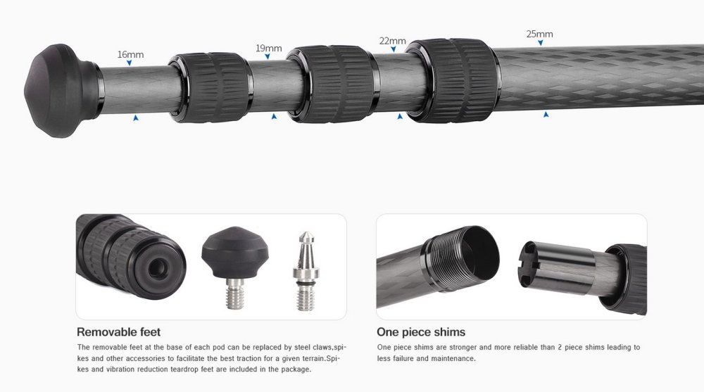 Průměr segmentů stativu: 25/22/19/16mm.