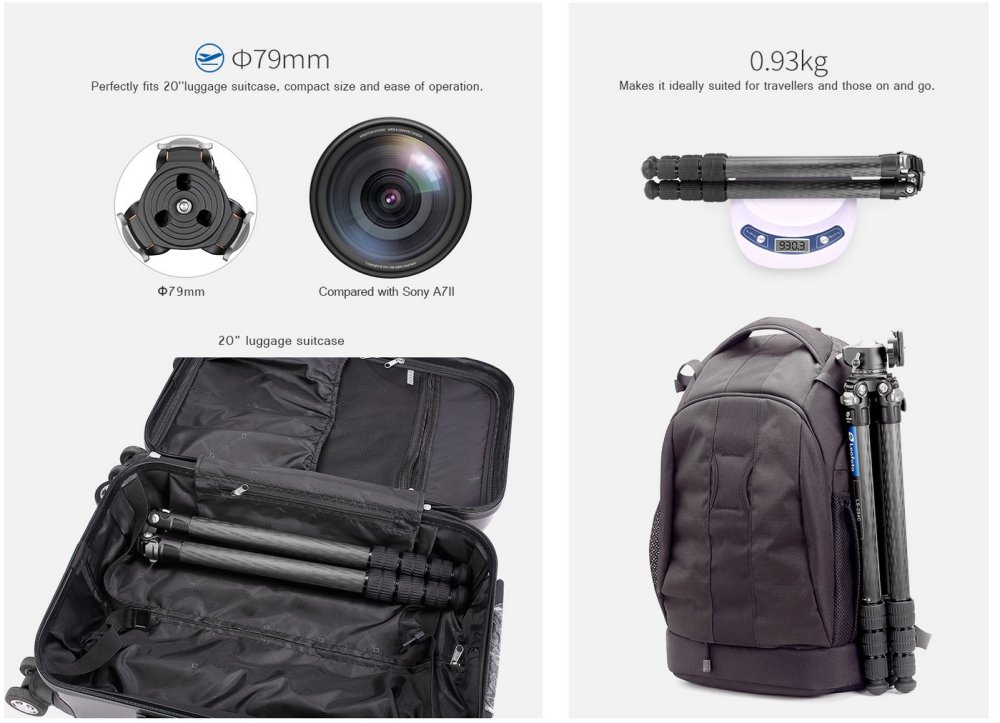 Při nízké hmotnosti 1,24g má tento stativ s kulovou hlavou max. nosnost až 8kg.