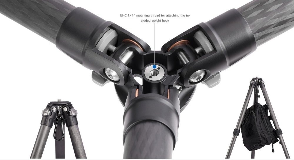 100% karbonový stativ složený z deseti vrstev karbonových vláken.