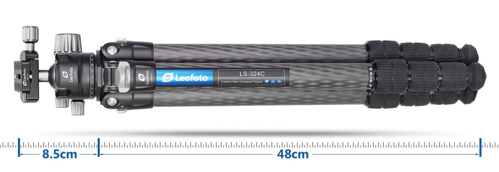 Kompaktní design bez středového sloupku umožní složení stativu do velmi úzkého tvaru.