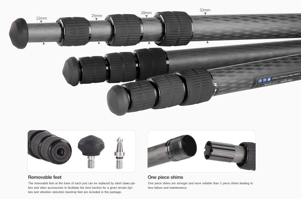 Průměr segmentů stativu: 32/28/25/22mm.