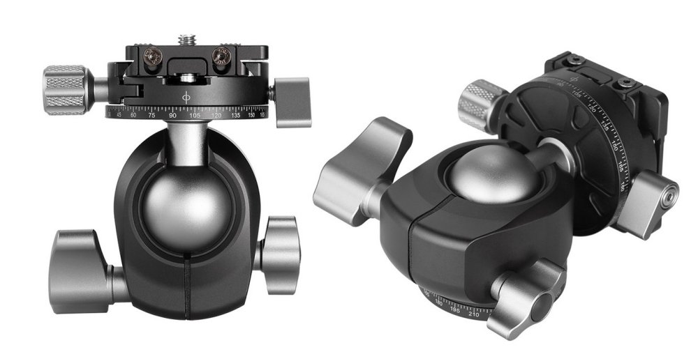 Kompaktní kulová hlava s dual panorama deskou a rychloupínací destičkou.