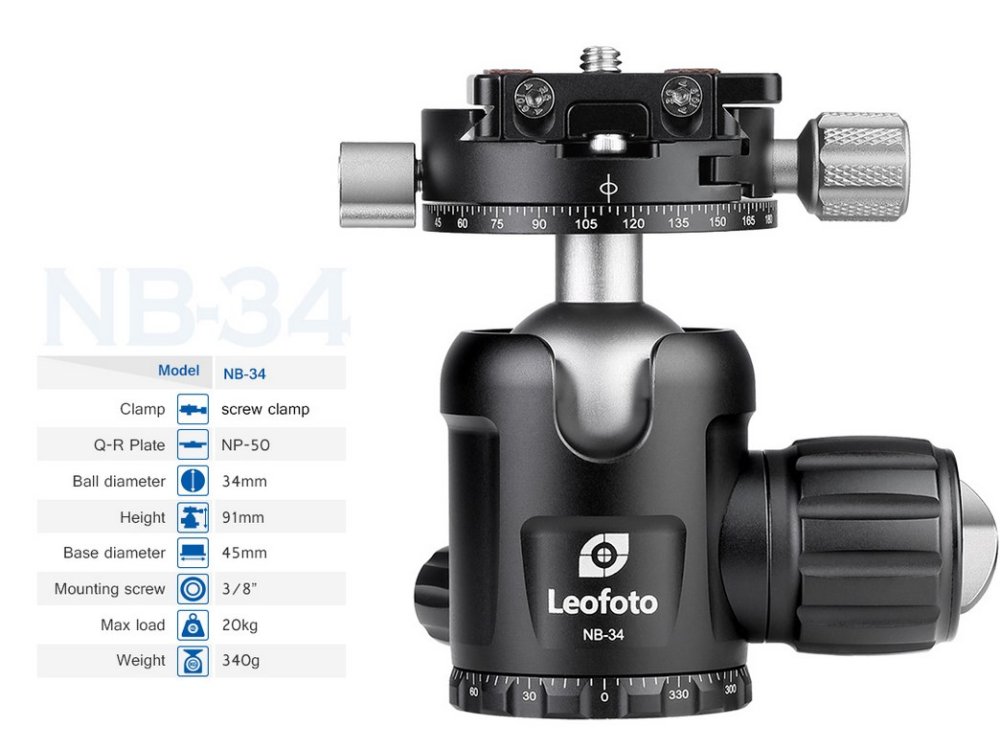 Leofoto - kulová hlava NB-34 + NP-50 (20kg) dual panorama