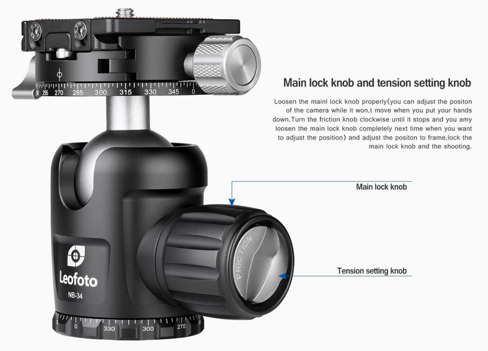 Ergonomicky tvarovaný hlavní šroub slouží k aretaci a po přepnutí spojky i k nastavení tuhosti. Snadno se ovládá i v zimě v rukavicích. Na obvodu panorama desek je laserem rytá stupnice 0-360°. Precizně opracovaný povrch kloubu s tolerancí 1/100mm zajišťuje přesný a hladký pohyb.