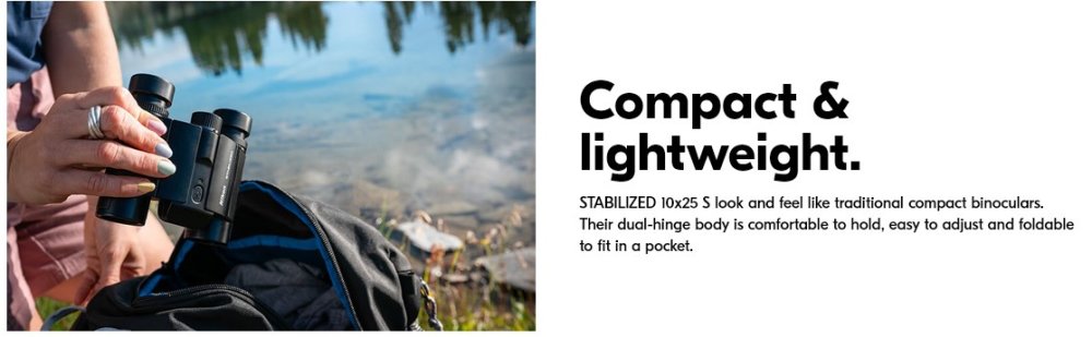 Elegantní kompaktní dalekohledy se stabilizací obrazu STABILIZED 12x25 a 10x25 patří mezi nejmenší a nejlehčí ve své třídě